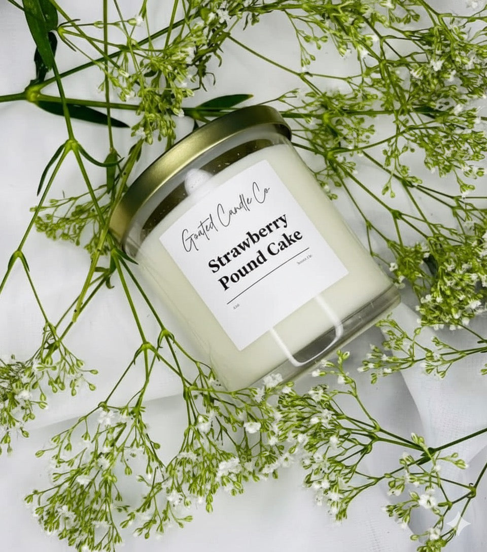 Indulge your senses with the sweet, bakery-fresh aroma of our Strawberry Pound Cake Candle. Bursting with notes of ripe strawberries, golden vanilla, and warm sugar, this candle fills your space with pure dessert bliss. Hand-poured with 100% natural soy wax for a clean, even burn — it’s comfort, warmth, and sweetness all in one.